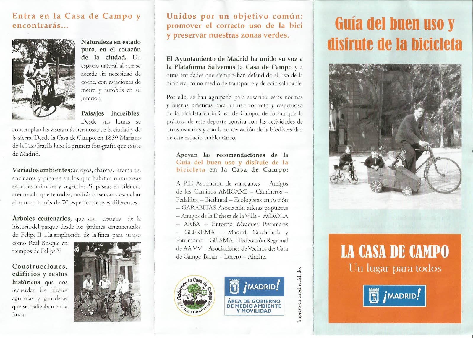 Hay que recordar que en diciembre de 2019 se lanzó una campaña en Change.org solicitando que los ciclistas cumpliesen el reglamento municipal que rige en la Casa de Campo, y que hace ya cuatro años que la Plataforma Salvemos la Casa de Campo, en colaboración con el área de medio ambiente y movilidad del Ayuntamiento, presentó una campaña para la convivencia entre bicicletas, paseantes y deportistas en el recinto, que incluía una «Guía del buen uso y disfrute de la bicicleta»